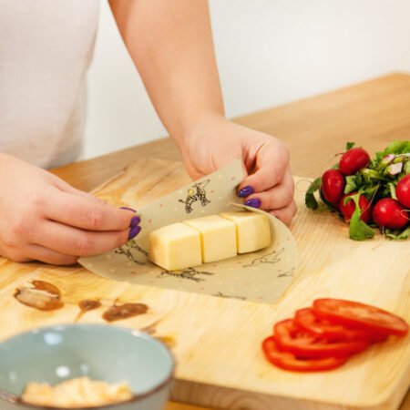 Voskový obrúsok Napkino je ekologický obal na potraviny. Je vyrobený zo 100% bavlny, včelieho vosku a živice. Spojenie týchto materiálov vytvára okolo potravín ochranný obal, ktorý okrem toho, že chráni tvoje potraviny, ich udržuje aj dlhšie čerstvé. Voskový obrúsok je vo veľkosti L a teda 31x33cm. Môžeš do neho zabaliť ovocie, zeleninu, chlebík na desiatu alebo koláč na túru. Každým zabalením ale odovzdáš lásku svojim potravinám a našej planéte, ktorá ti poďakuje.